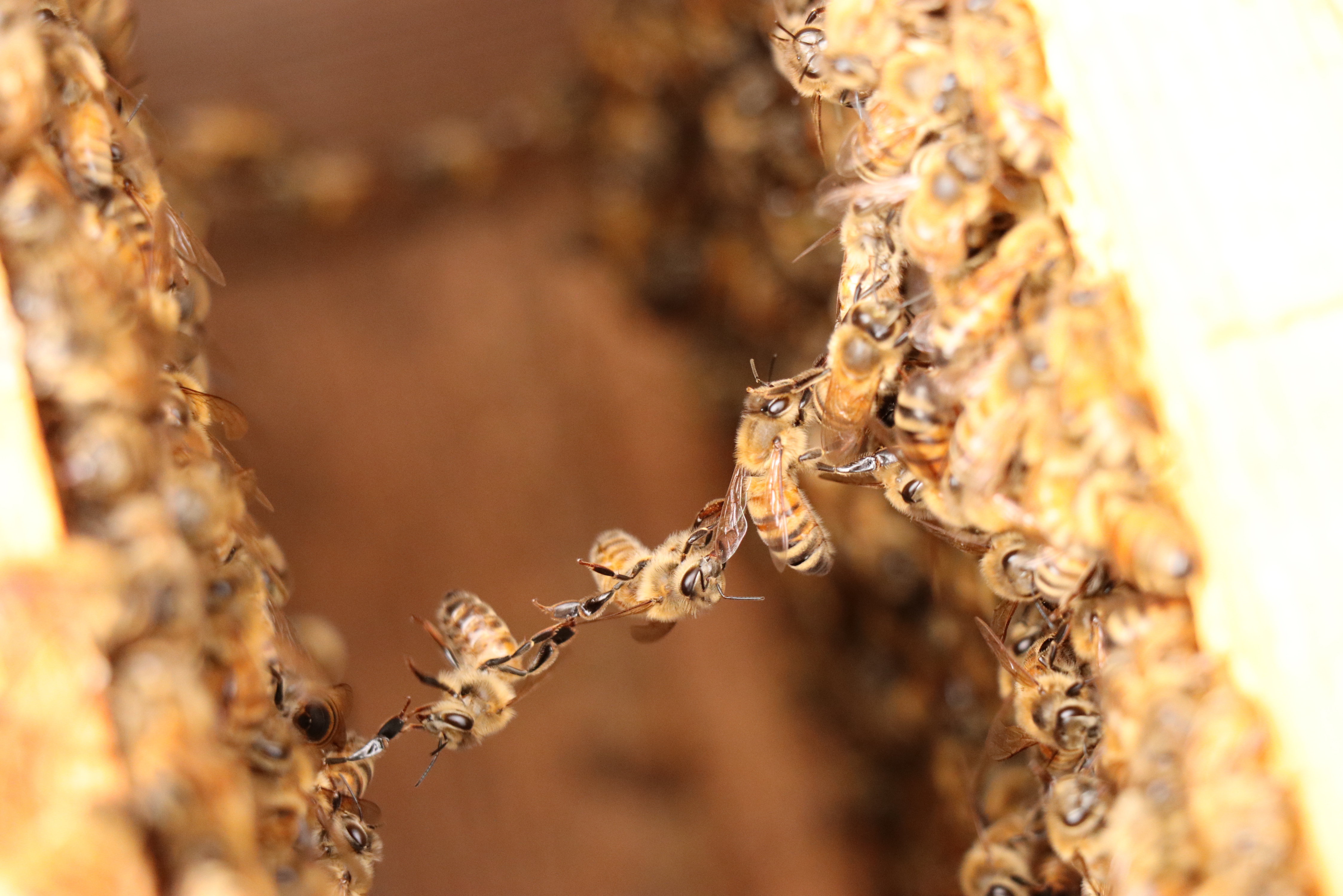 りんごの花は不和合性といって、自分の花で受粉することができません。そこで受粉をお手伝いしてくれているのがミツバチたちです。